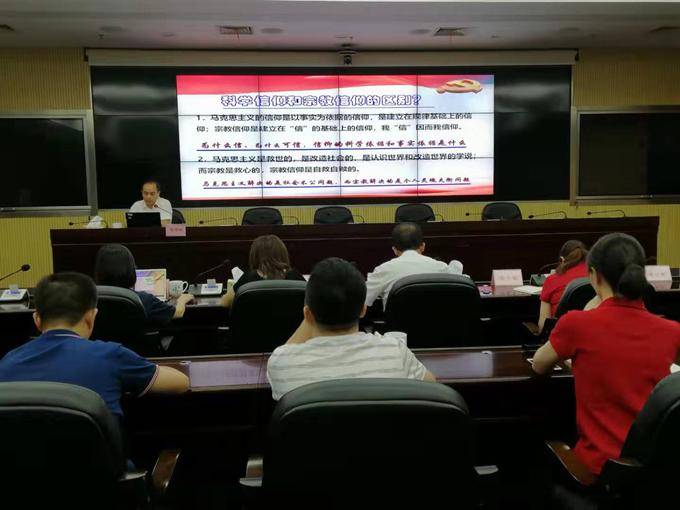 舒行钢副厅长以“开天辟地——中国共产党诞生”这一历史事件为核心,以党的“一大”为重点, 向前追溯至中国近代史,向后延伸至中国当代史。一帧帧照片、一组组数据,一幅幅情景,深刻讲述了中国近代史是一部充满了屈辱、苦难与抗争的历史,更是一部中华民族为救亡图存而英勇奋斗、艰苦探索的历史。中国共产党是历史地选择,是人民的选择,事实雄辩地证明,只有中国共产党才能救中国,只有中国共产党才能发展中国!“为中国人民谋幸福,为中华民族谋复兴,是中国共产党人的初心和使命,是激励一代代中国共产党人前赴后继、英勇奋斗的根本动力。同时,他围绕什么是信仰?马克思主义是科学学说还是信仰?科学信仰和宗教信仰的区别?做新时代真正的马克思主义信仰者,深刻阐述了坚定马克思主义信仰的深远意义和价值追求。