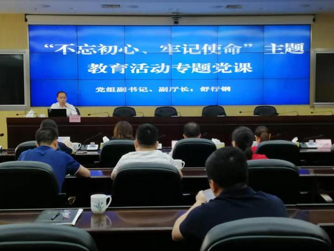 7月31日下午,党组副书记、副厅长舒行钢以“追根溯源明初心、坚定信仰担使命”为题,给分管处室(单位)全体党员干部上了一堂生动的“不忘初心、牢记使命”主题教育专题党课。厅机关二楼视频会议室学习氛围浓厚,建筑节能与科技处、计划财务处、人事教育处、机关党委、离退休人员管理服务处40余人参加了学习活动。