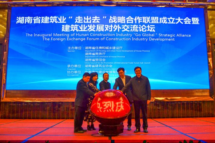 为积极践行国家“一带一路”倡议,深入贯彻我省“创新引领、开放崛起”战略,推动我省建筑业“走出去”外拓发展,11月30日,湖南省建筑业“走出去”战略合作联盟成立大会暨建筑业发展对外交流论坛在长沙隆重举行。会议由湖南省住房城乡建设厅、湖南省商务厅、湖南省贸促会联合主办。湖南省住房城乡建设厅党组书记、厅长鹿山出席会议并讲话,湖南省商务厅党组成员、副厅长李心球,湖南省贸促会党组成员、副会长傅丹舟出席并致辞,境外政商代表加纳能源部电力司司长威廉·哈顿·门萨先生等做推介发言。会议由湖南省住房城乡建设厅党组成员、副厅长宁艳芳主持。